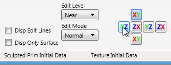以下の図のように,編集ペインの左下の,Edit LevelがNearなことと,Disp only Surface がチェックされていないことを確認し,YZボタンをクリックします。